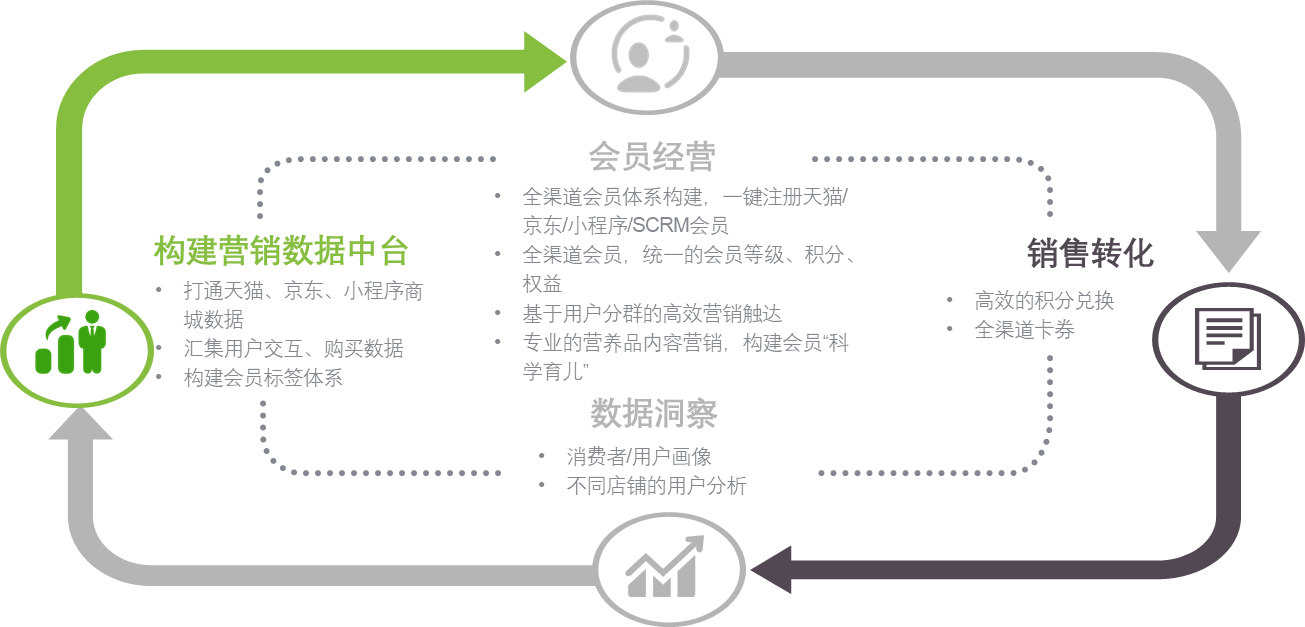 ?奶粉亟需通過(guò)適合的解決方案,在建立營(yíng)銷(xiāo)數據中臺的同時(shí),將用戶(hù)轉變?yōu)闀?huì )員,培養會(huì )員的價(jià)值認同和身份認同。